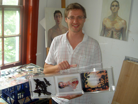 2. Julian Meagher in the 1/2 doz studio with 1/2 doz Match Box Gallery featuring Side B - works left to right by
