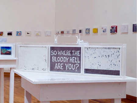 Unscreened / So Where the Bloody Hell Are You?, enamel on fly screen, 2006