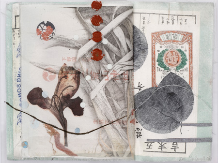 The work is inspired by the simplicity of traditional Japanese gardens. The fabric elements trapped within the sculpture are stencil cut from the materials used for a previous work, ‘Tokyo Imprints’. This work was developed in response to a research trip to Japan in 2004. Distillation, builds on this work, becoming a three-dimensional installation. This work investigates the imagination and fundamental views of our true nature.